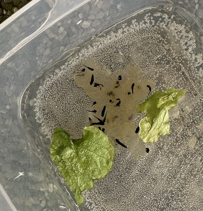 Die Kaulquappen blieben in der ersten Zeit des Schlüpfens zuerst noch in einem kleinen Behälter.